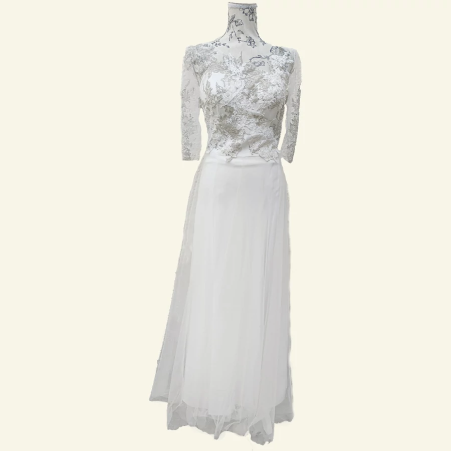 3/4-es ujjú csipkés, díszes esküvői ruha S