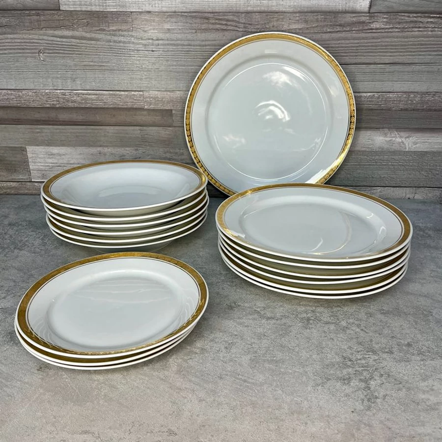 Alföldi porcelán aranyozott szélű tányér szett