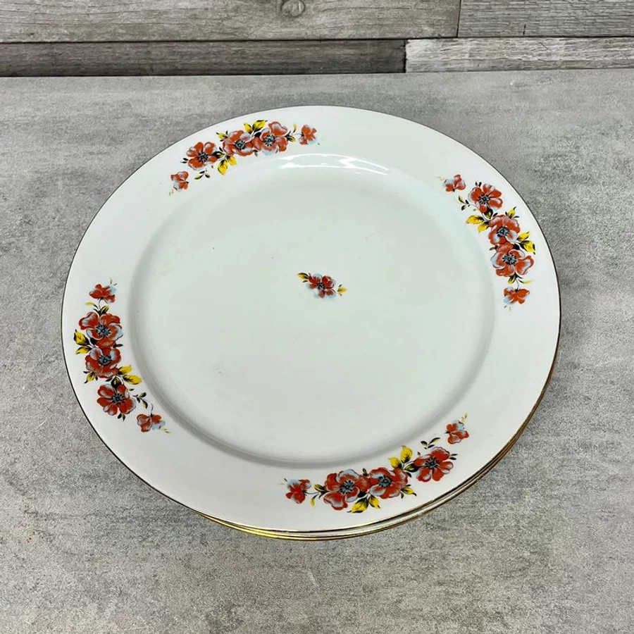 Alföldi porcelán virágmintás lapostányér készlet aranyozott szélekkel