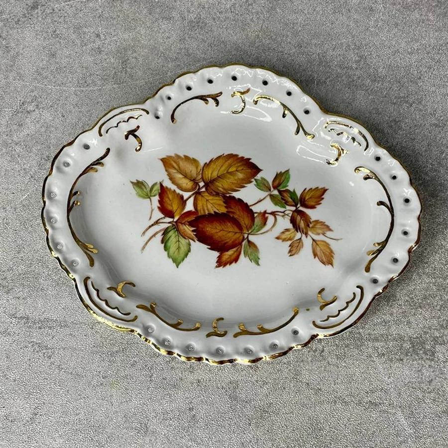 Aquincum Budapest aranyozott szélű levélmintás áttört asztaldísz
