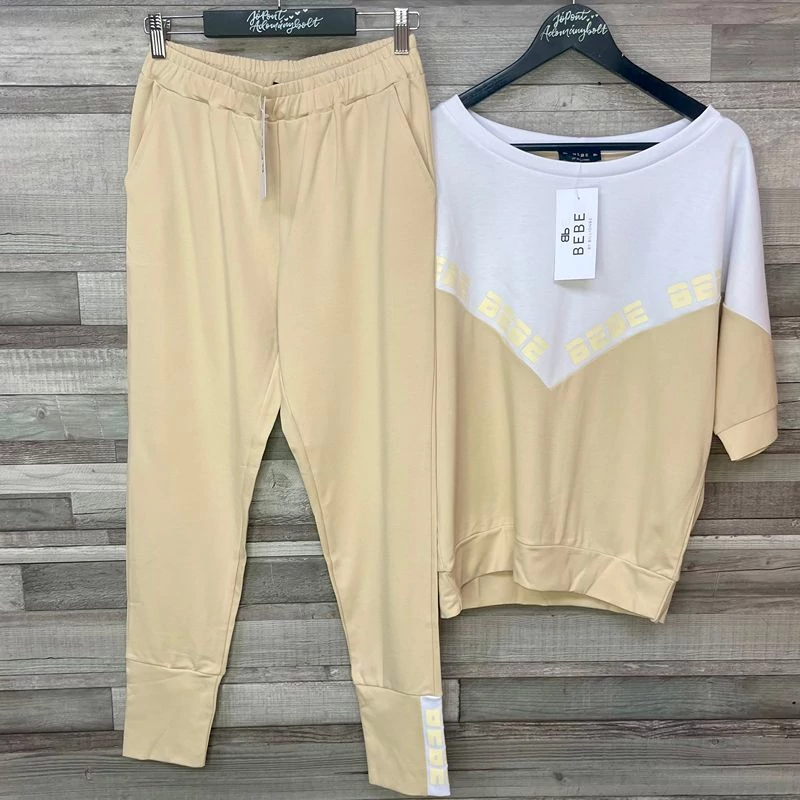 Bebe bézs-fehér szabadidő szett M