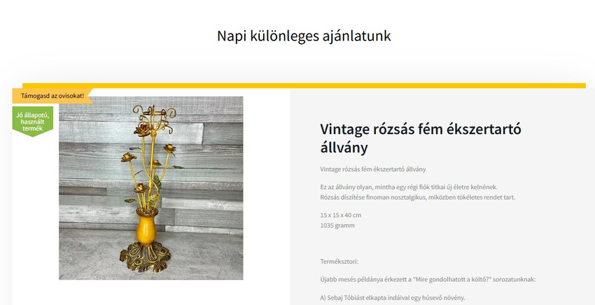 Szintén a főoldalon elindítottuk a "Napi különleges ajánlatunk" rovatot, ahol minden nap más terméket kínálunk kedvezményesen, egy kis személyes terméksztorival megspékelve.
