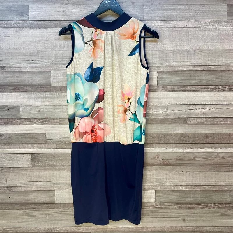 Blue Nature virágmintás sötétkék ujjatlan ruha L