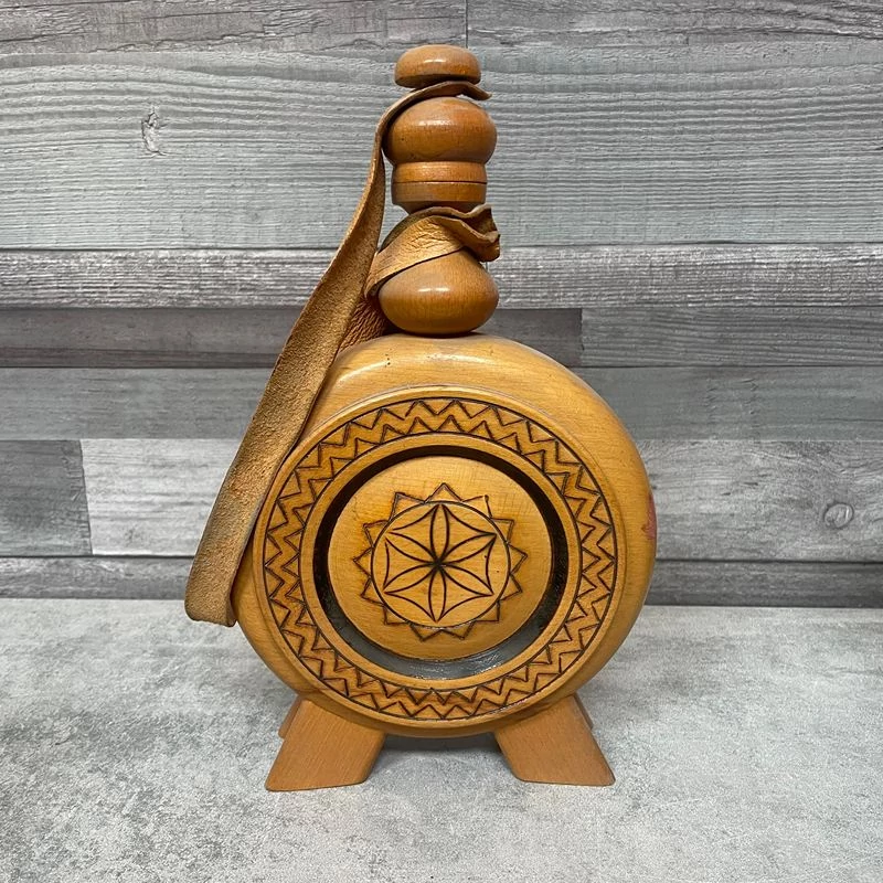 Bratislava retro faragott fa kulacs, bőr szíjjal