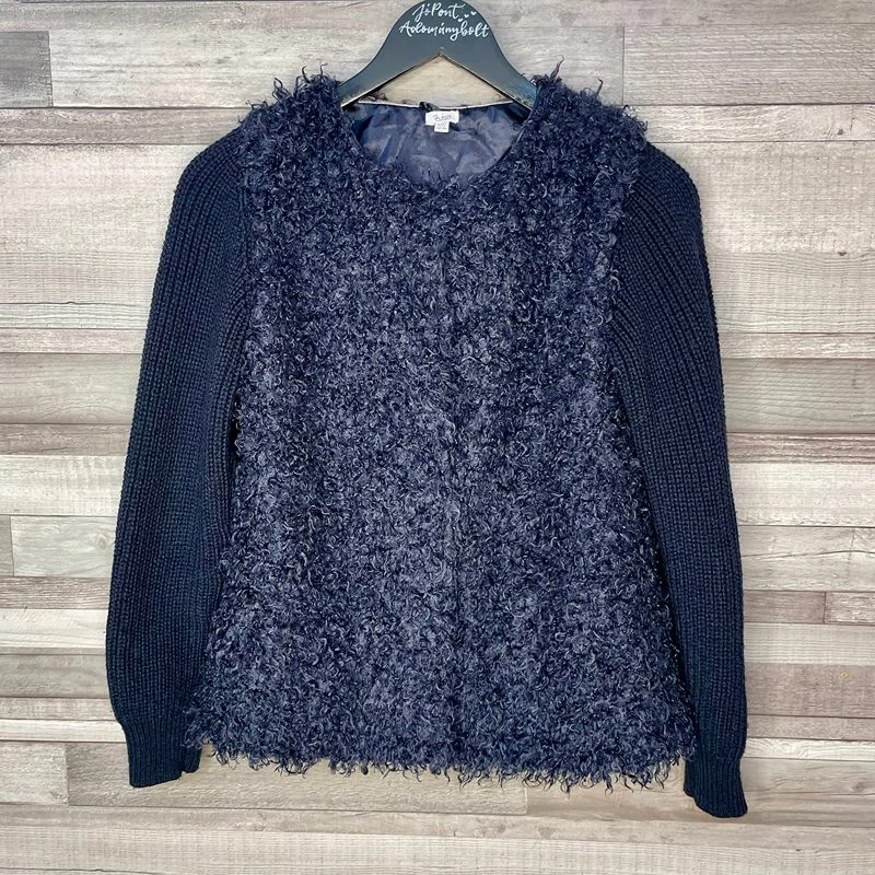 BwKids sötétkék szőrmés patentos lány pulóver 164
