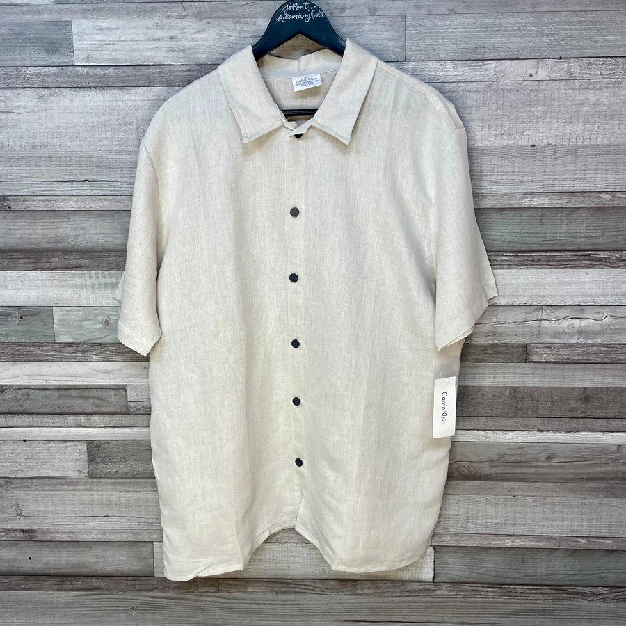 Calvin Klein replika bézs rövid ujjú ing fehér gombbal több méretben