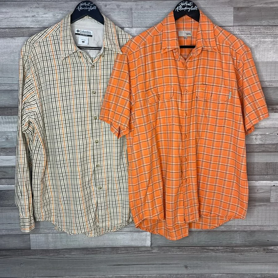 Két kockás férfi ing L-es méretben: a Columbia az extrém outdoor túrákhoz, a Camel Active pedig a sörözéshez, így minden alkalomra felkészült lehetsz, akár a hegyen, akár a kocsmában. (vagy fordítva)