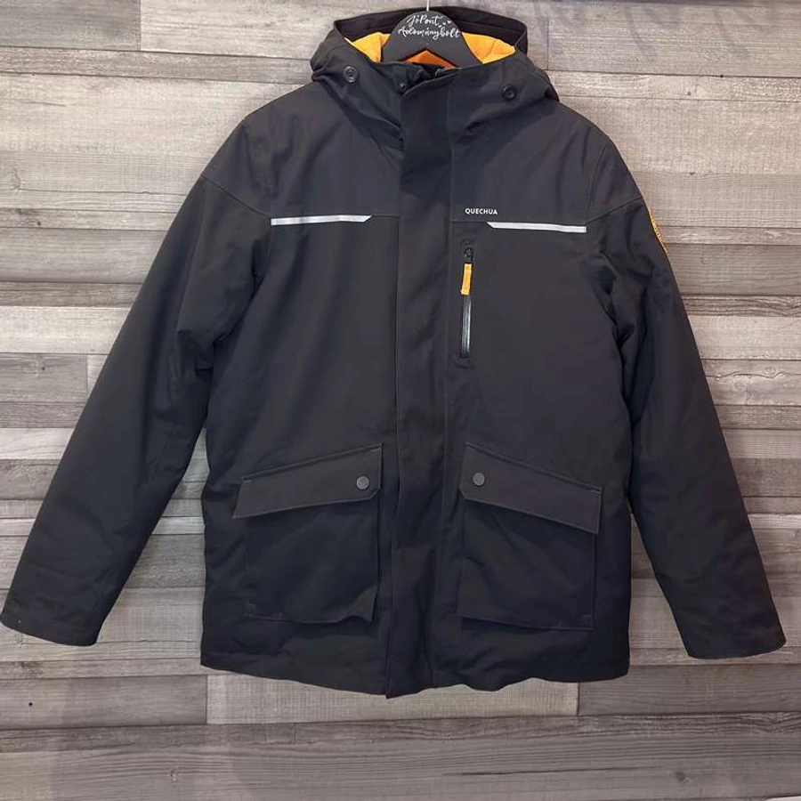 Ez a fekete unisex Quechua télikabát sportos és funkcionális kialakítású, ideális hideg, szeles időjáráshoz. Meleg bélése, kapucnija és praktikus zsebei kényelmes viseletet biztosítanak városi használathoz és szabadtéri tevékenységekhez, sportoláshoz egyaránt. Strapabíró, mégis komfortos darab.