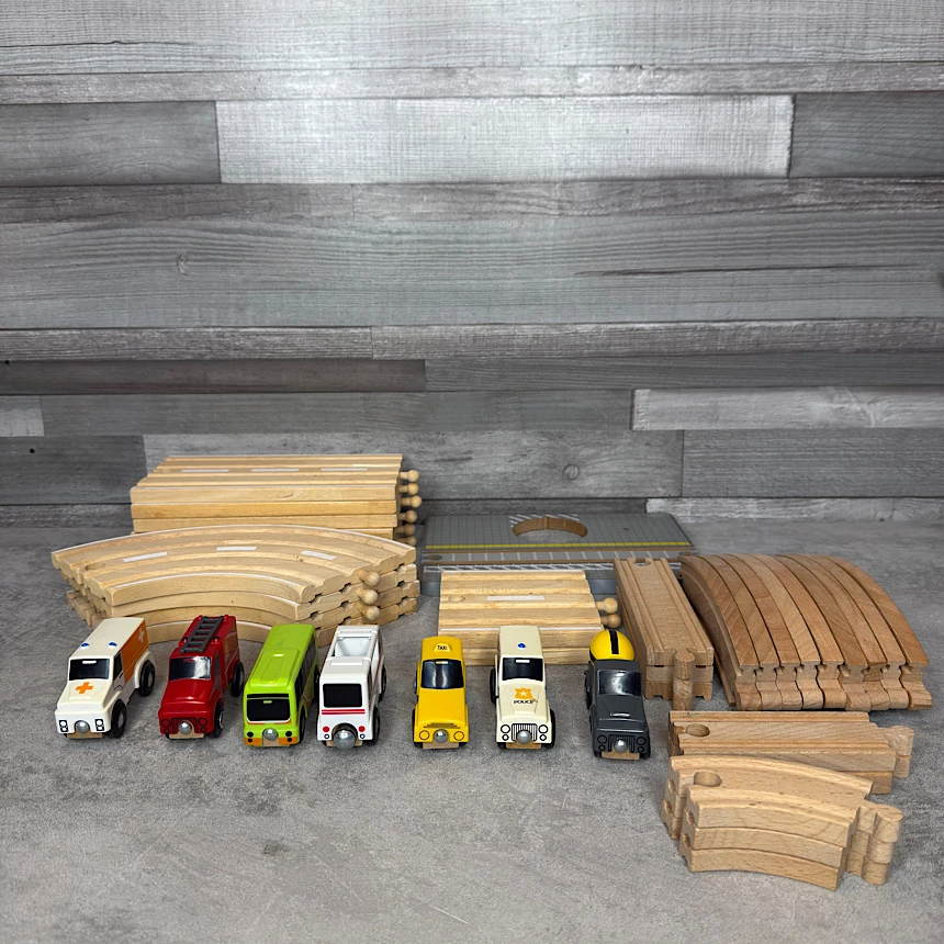 Fa vonatpálya / autópálya készlet kör alakú sínrendszerrel, ami tovább bővethető igény szerint. A csomag még tartalmaz 7 db kisautót/ kamiont. Fejleszti a gyerekek kreativitását, finommotorikáját és képzelőerejét. Strapabíró, időtálló fajáték, ideális ajándék kisgyermekeknek.