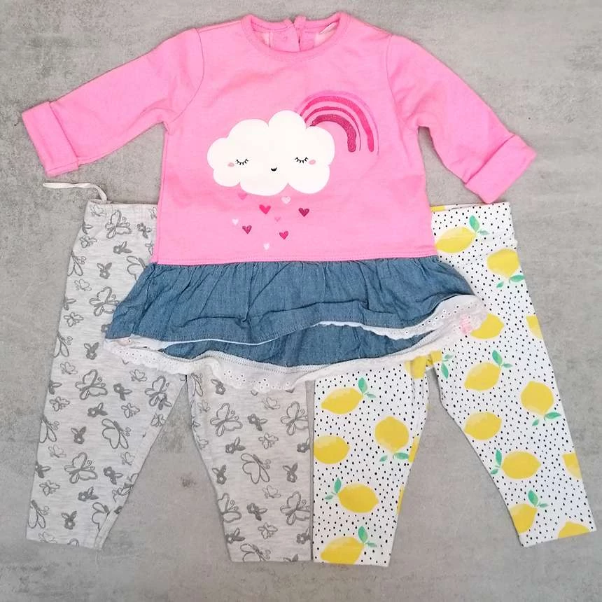 F&F kislány vidám felhős ruha szett 3-6 hó