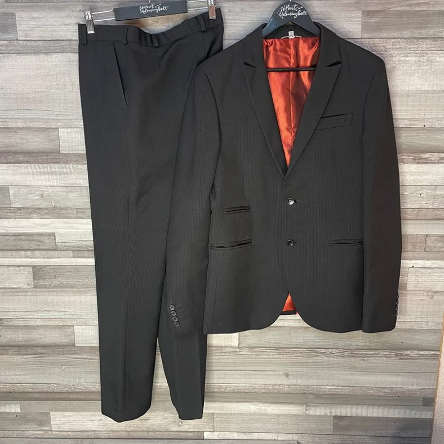 Ez az öltöny az a típus, aki mindig tudja, hogyan kell belépni a terembe. Sötétkék, csíkos, modern és annyira elegáns, hogy a naptárad is automatikusan tárgyalásokat generál.