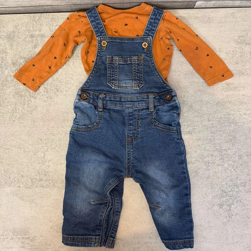 Ezzel a kantáros nadrággal és narancssárga body szettel nagyon divatos lesz a kis lurkó, minden kúszó-mászó játszóházlakó megirigyelheti majd!