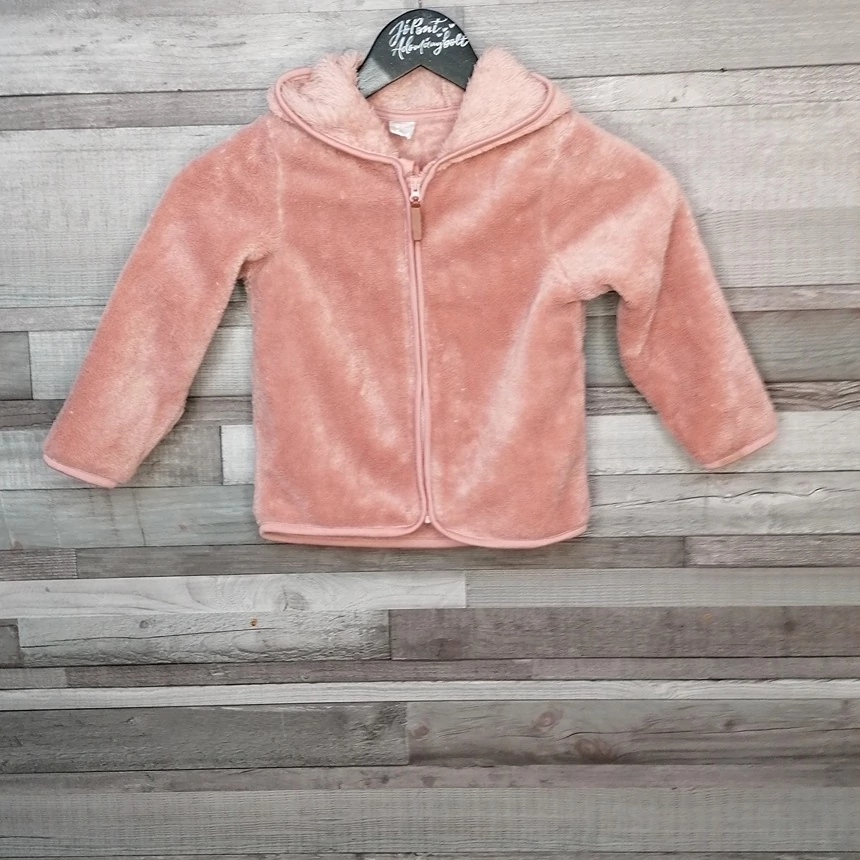 H&M púderszínű szőrös kislány kapucnis kardigán bőr cipzárral 104