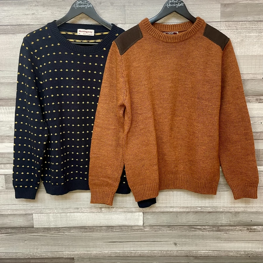 Hemingway sötétkék, Next barna kötött pulóver szett M