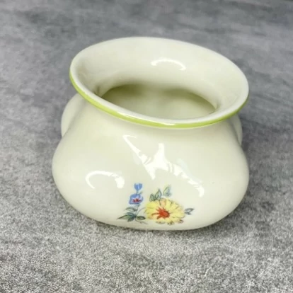 Egy ritka kis edény, ami a szocialista Állami Biztosító és a finom porcelán szürreális találkozása. Ideális, ha a luxust is humorral fűszerezve, kommunista múlttal szereted.