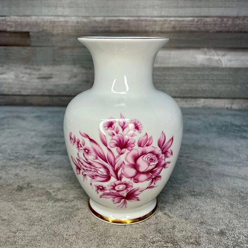 Hollóháza Hungary, Hollóházi rózsaszín virágos, aranyozott váza