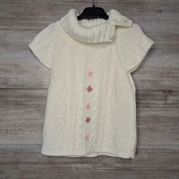 APRÓKA dizájner kötött kislány ujjatlan fehér pulóver 116-os méretben. Letisztult, fehér színének köszönhetően egy csinos nadrággal elegáns viselet ovis ballagásra. A homokozó kerülendő benne. Hossza nyaktól: 46 cm |