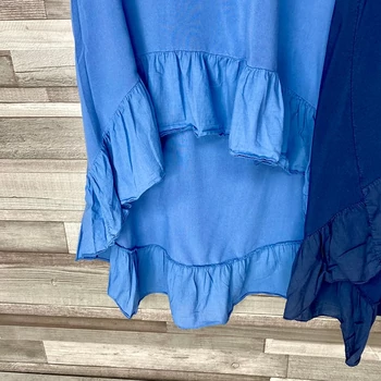 Olasz hosszított fazonú kék blúz szett 40-42 Olasz elegancia, ami elhiteti veled, hogy te is a Comói-tó mellett sétálgatsz, még akkor is, ha a buszmegállóban állsz. Hossz elöl: 60 cm |