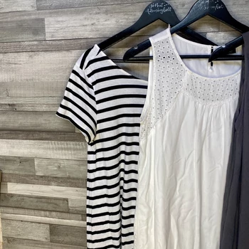 Apricot, Tchibo, Reserved tunika szett M-L Három tunika, három hangulat: laza városi séta, otthoni kuckózás vagy esti program – mindenre lesz megfelelő darab. Miért válaszd? Szürke Apricot Fehér Tchibo Csíkos Reserved ( minimális bolyhosodással, kopással) |