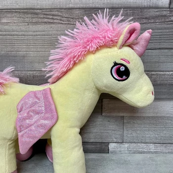 Vajszínű-rózsaszín unikornis plüss Ez az unikornis puhább, mint a valóságos mesevilág. Az egyetlen, amitől senkinek nem lesz cukorsokkja, mégis mindenki megölelné. 33 x 17 x 34 cm |