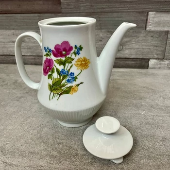 Colditz GDR virágos porcelán teáskanna Ez a kanna mintha egyenesen a nagymama kredencéből sétált volna elő. Elegáns és finom, benne a tea is sokkal ünnepélyesebb. 16 x 13 x 18 cm |
