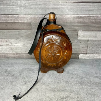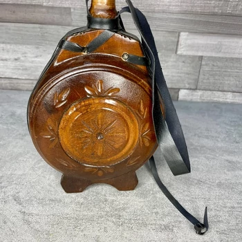 Régi faragott, lakkozott fa kulacs bőr szíjjal Az a kulacs, mitől instant túravezető leszel. Kicsit romantikus, kicsit hegyi pásztor vibe. 14 x 6 x 21 cm |