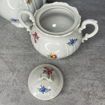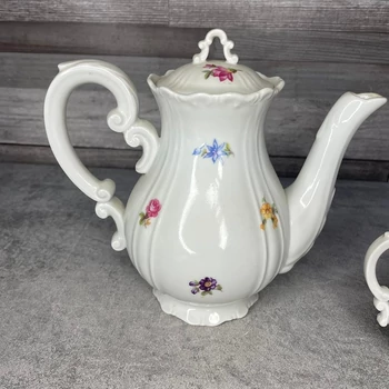 Zsolnay Pécs régi barokk apró virágos porcelán teás készlet Ez a Zsolnay teáskészlet bebizonyítja, hogy a barokk kor apró virágai tökéletesen illenek a mai elegáns teázáshoz – feltéve, ha a vendégek nem ejtenek bele semmit a csészébe. Kanna: 20 x 10 x 18 cm Össz. súly: 712 gramm |