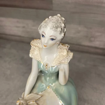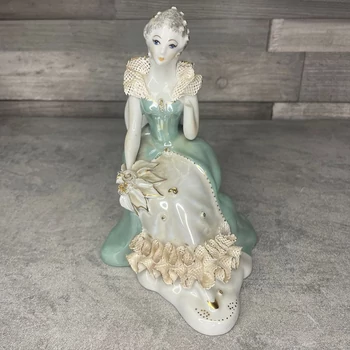 Stipo Romania ülő hölgy porcelán dísz Ez a finom kerámia figura azt üzeni, hogy az elegancia a romániai iparművészetben is létezett. Egy női figura, aki elegánsan ül, és garantálja, hogy a lakásodban is legyen egy feszült, de csendes női jelenlét. Egyik kézfeje letört. 12 x 13 x 17 cm |