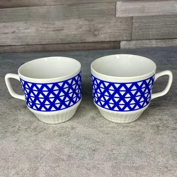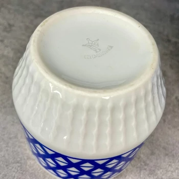 Czechoslovakia kék mintás porcelán bögrék Két darab, egykori Csehszlovákiából származó bögre, ami a kék szín és a szocialista nosztalgia találkozása. Ideális, ha a bögrédnek is van egy kis története. 11 x 8 x 8 cm 2 db |