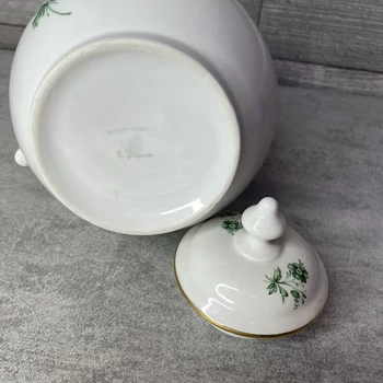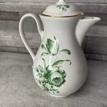 Czechoslovakia Bohemia zöld mintás aranyozott porcelán kancsó Ez az elegáns edény azt üzeni, hogy a szocialista blokkban is volt helye a luxusnak, csak éppen az aranyozott díszítés mögött egy zöld színű, mintás nosztalgia bújik meg. Ideális, ha a teázást is a csehszlovák minőség és a pazar csillogás jegyében végzed. 16 x 14 x 23 cm |