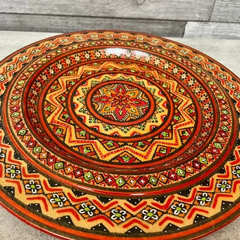 Népies mandala jellegű fa dísztényér Ez a tányér olyan, mintha a faladat is hipnotizálni akarná. A népies mandala jellegű minta garantálja, hogy mindenki megáll előtte. Tökéletes, ha a nappalidba vagy a könyvespolcodra keresel egy kis bájos, de kissé fura kiegészítőt. Átmérő: 26,5 cm Súly: 362 gramm |