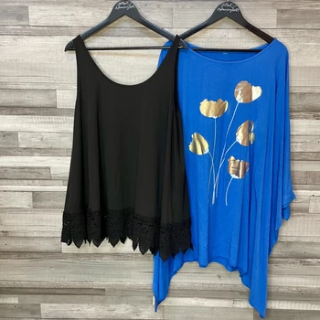 Fekete csipkés topp, kék mintás lenge felső szett XXL-XXXL Ez a szett olyan kettős, mint a személyiséged reggel és délután között. |
