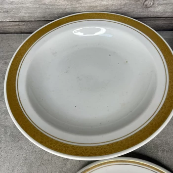 Alföldi porcelán aranyozott tányér szett Ezek a tányérok azok, amik akkor is elegánsak, ha csak egy rántottát eszel róluk. Az Alföldi porcelán a garancia a minőségre, az aranyozott díszítés pedig garantálja, hogy még a legegyszerűbb asztal is királyi terítéknek tűnjön. Csak ne a mikróba tedd! 2 db mélytányér: 23 x 23 x 3,5 cm Össz. súly: 1100 gramm Mérsékelt kopásokkal. |