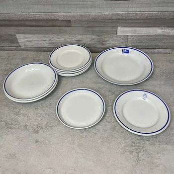Zsolnay kék csíkos porcelán tányér szett Ha azt hitted, a Zsolnay csak aranyozott vázákat tud, amikre ránézni is tilos, akkor itt ez a kék csíkos szett. Meglepően hétköznapi, már-már olyan, mintha egy nagyon elegáns menzán találták volna ki, de azért mégiscsak porcelán. Eheted róla a paprikás krumplit is, a tányér nem fog megsértődni, te meg elmondhatod, hogy Zsolnayból tolod a hétköznapokat. 2 db mélytányér Némelyik enyhén kopott. 2970 gramm |