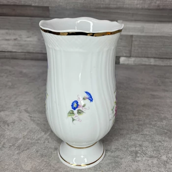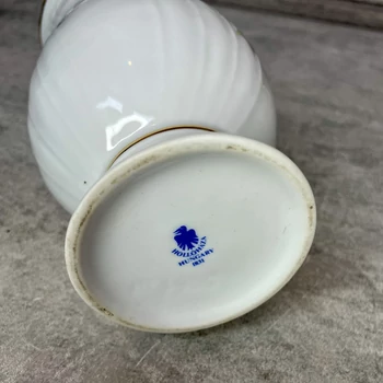 Hollóháza Hungary, Hollóházi hajnalkamintás aranyozott porcelán váza Ez a váza annyira elegáns, hogy még virág nélkül is főszereplő. 9 x 9 x 18 cm |
