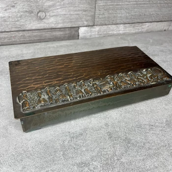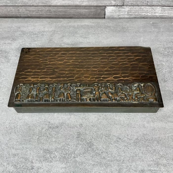 Lignifer réz díszdoboz szüreti életképet ábrázoló domborművel Ez a doboz olyan, mintha egy régi történetet zárt volna magába. 20 x 10,5 x 3 cm Apró horpadással. |