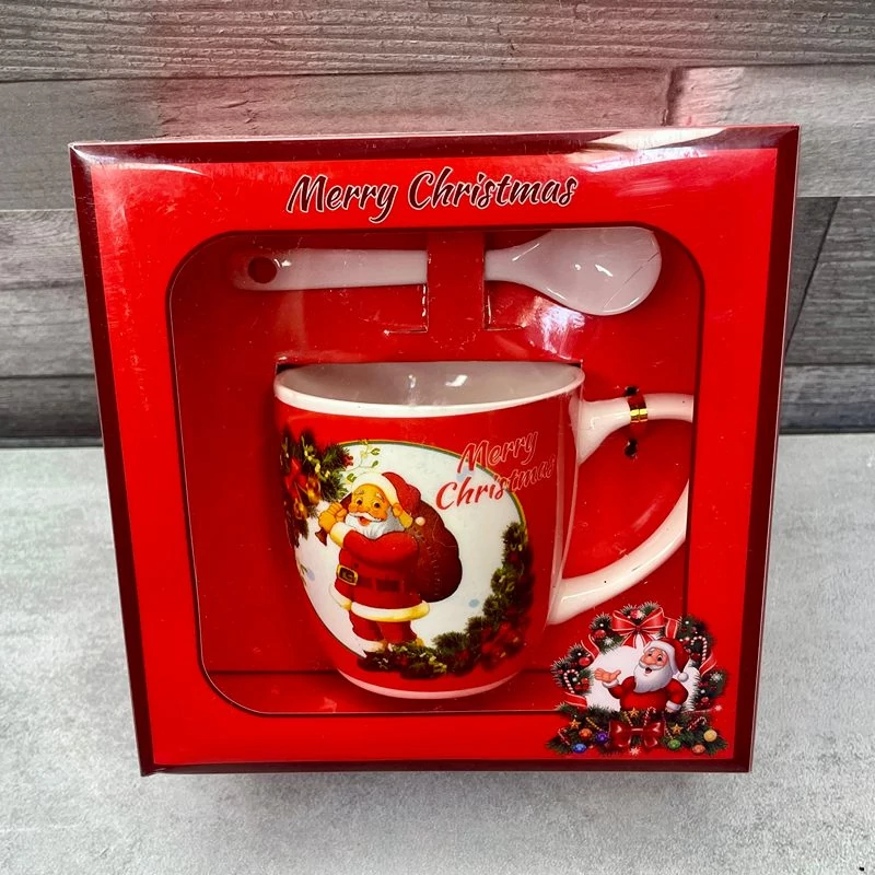 A bögre, ami annyira karácsonyos, hogy a kávé is fahéjillatot vesz tőle. Hímzett minta, Mikulás, és garantáltan boldog reggelek.