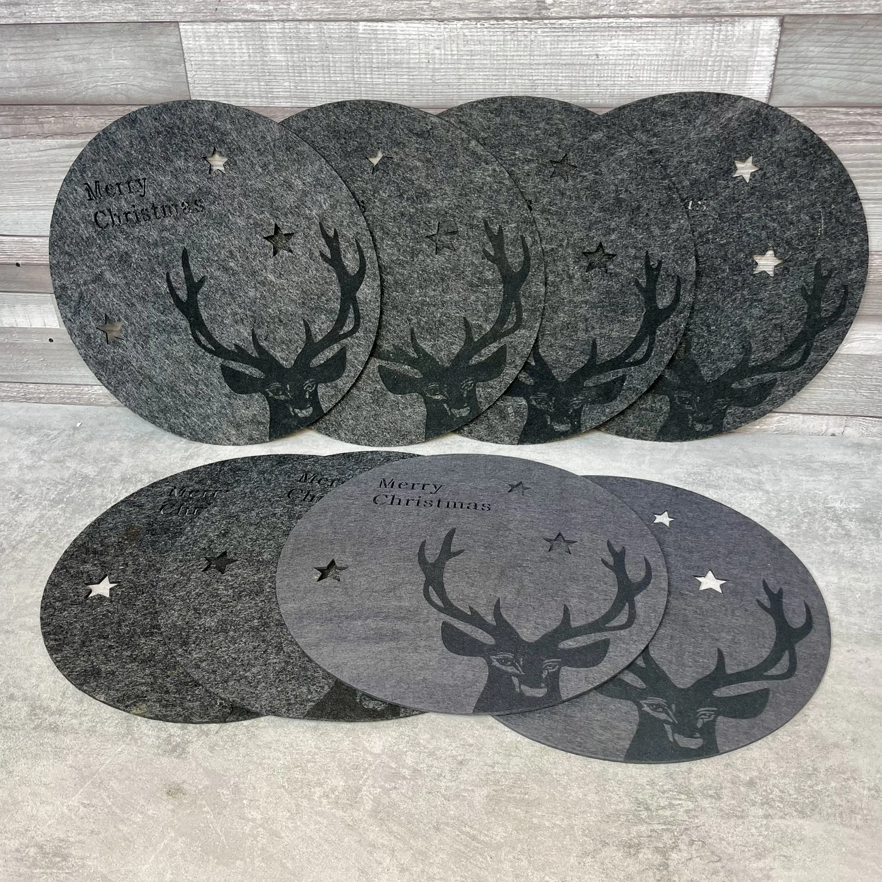 Ezek az alátétek annyira elegánsak, hogy a vacsora is jobban érzi magát rajtuk. Szarvas, szürke és csipetnyi karácsonyi menőség.