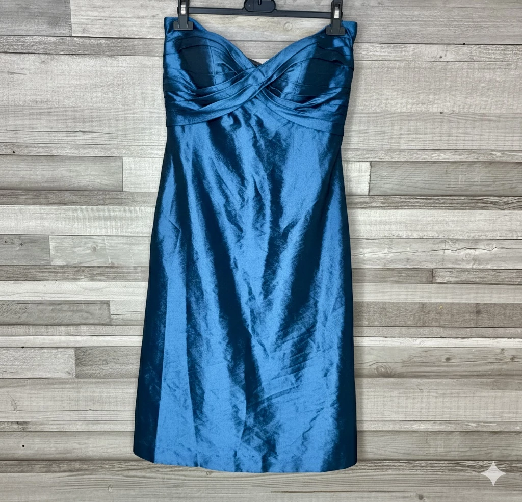 Kék organza pánt nélküli alkalmi ruha M