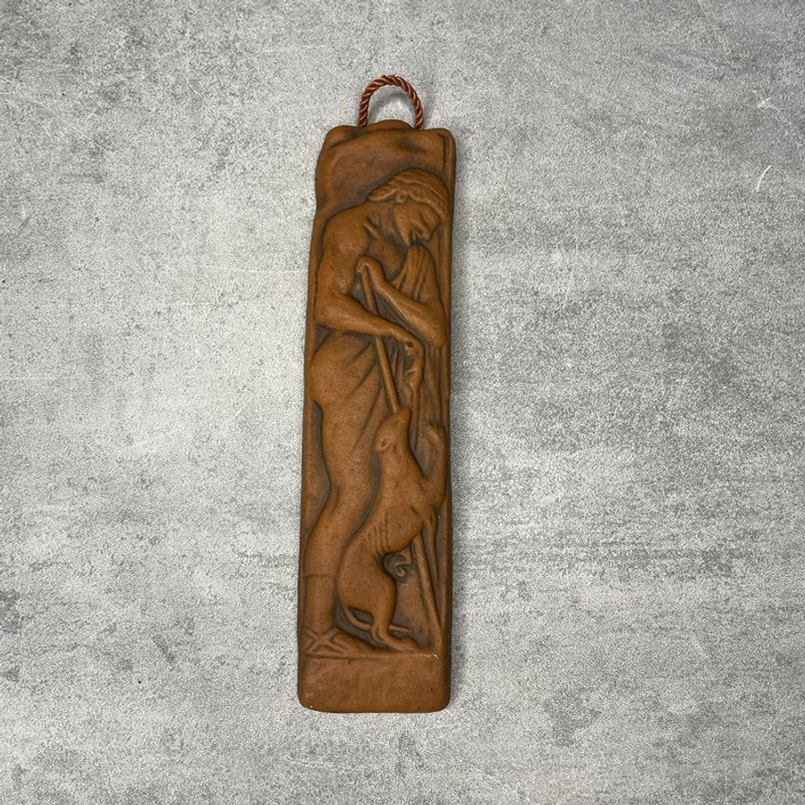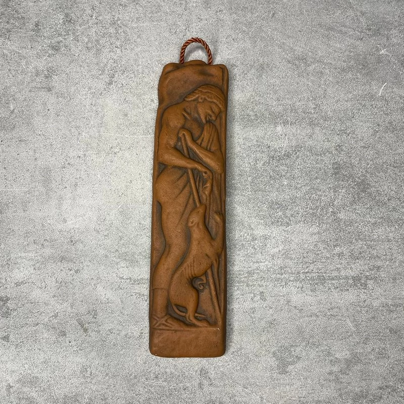 Egy kerámia dombormű, amely örök hűséget sugároz: ha már a valóságban nincs férfi kutyával, legalább a falon legyen meg a tökéletes barátság.