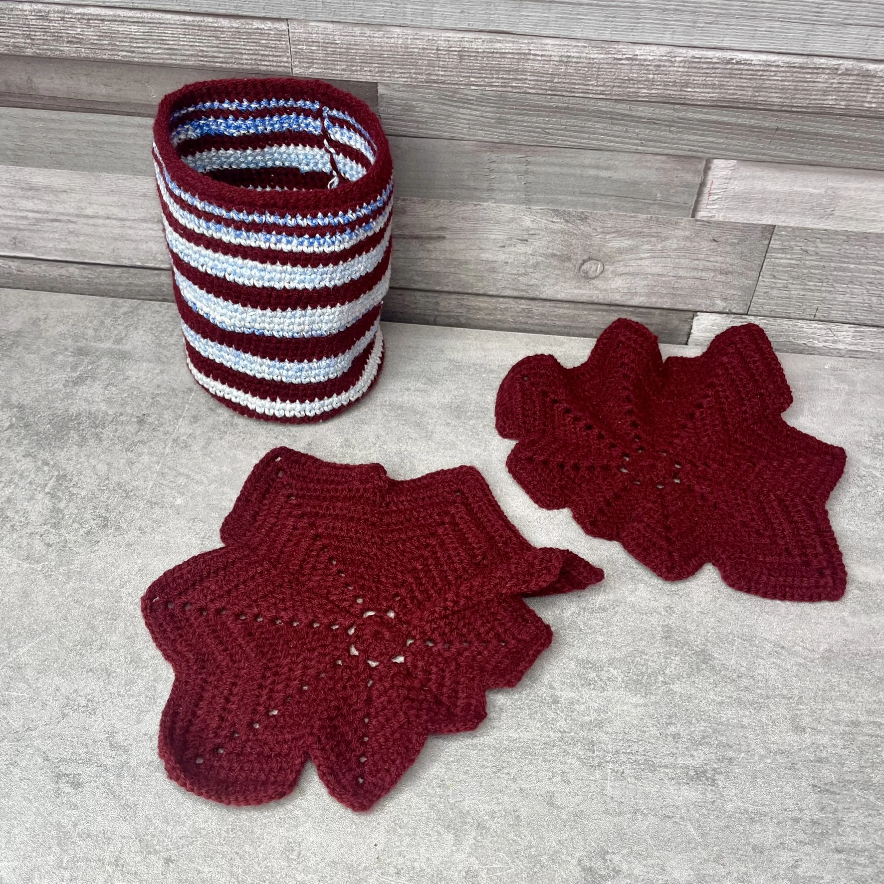 Kézműves horgolt tároló díszekkel