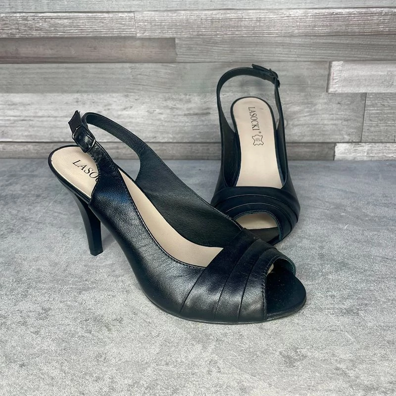 Lasocki fekete bőr magassarkú szandál 37