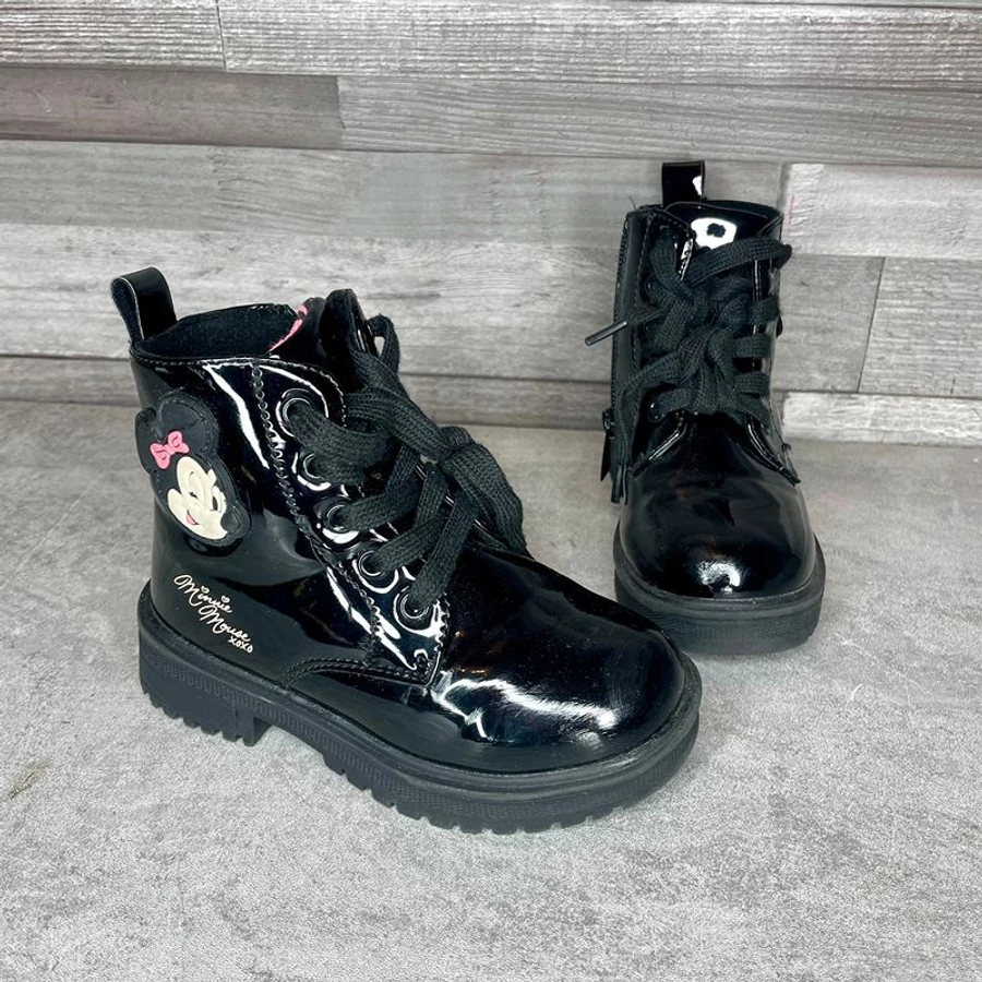 Minnie Mouse fekete lakk kislány bokacsizma 26