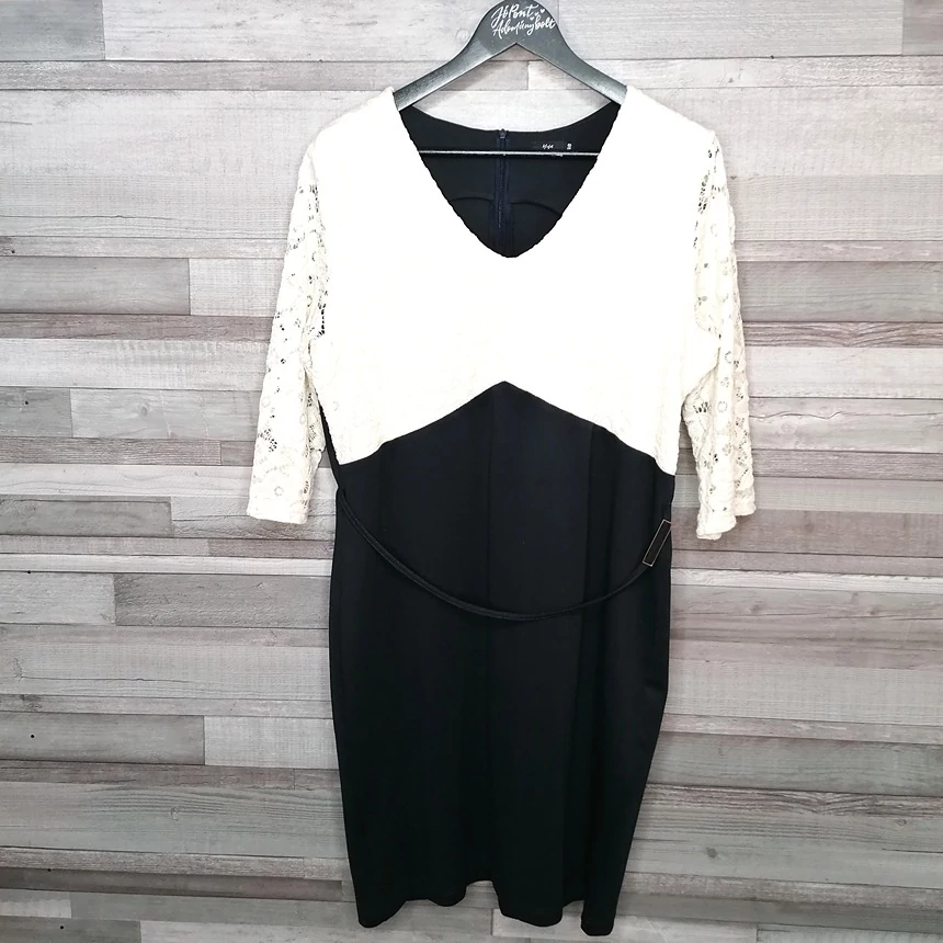 Mya női fekete-fehér csipkés alkalmi ruha övvel 48