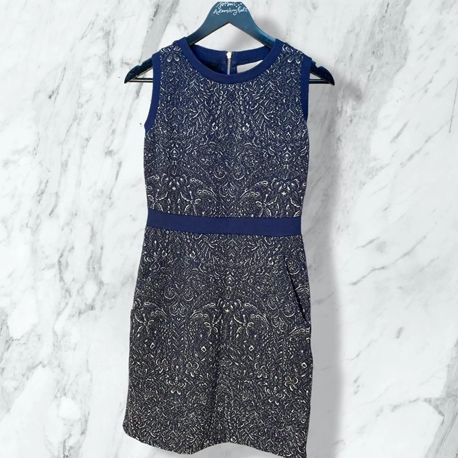 Next sötétkék-ezüst mintás alkalmi ruha UK 10