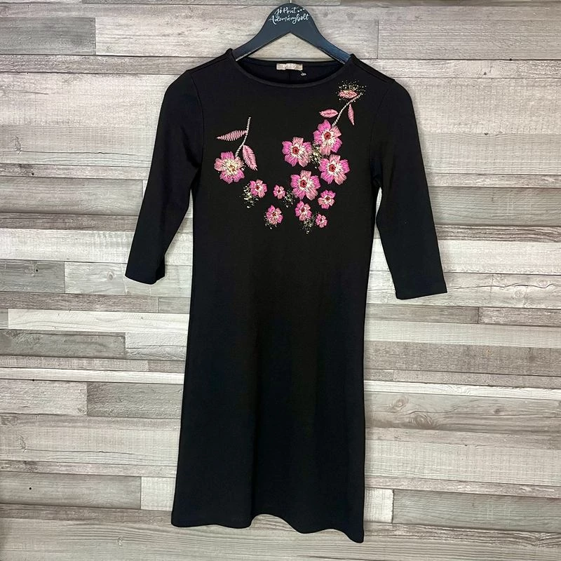 Orsay fekete pink virágos elegáns ruha 34