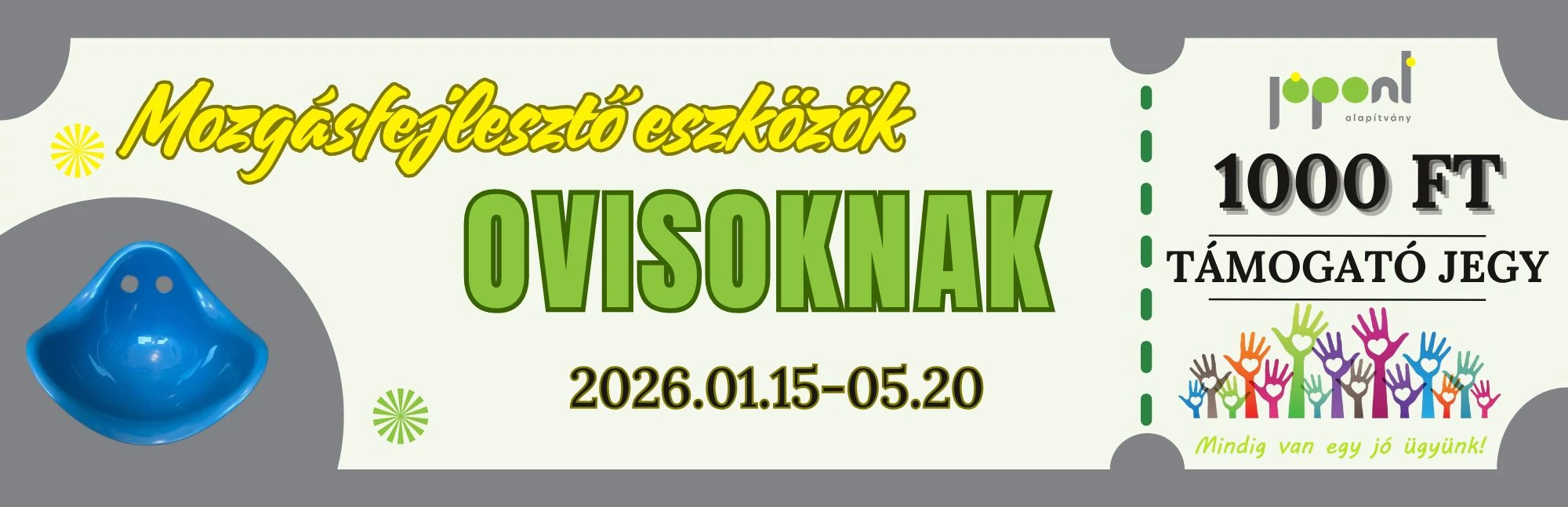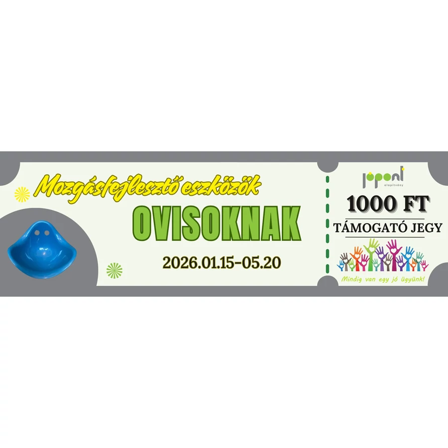 Ennek a támogató jegynek a megvásárlásával te is hozzájárulsz ahhoz, hogy a JóPont Alapítvány minél több mozgásfejlesztő eszközt vásárolhasson fejér vármegyei ovisoknak. Mindössze egy kávé és egy briós árával részese lehetsz a csodának, amit ezek az eszközök elérnek: az idegpályák összehangolásával az ovisok magabiztos, ügyes, értelmes fiatalokká érnek.
