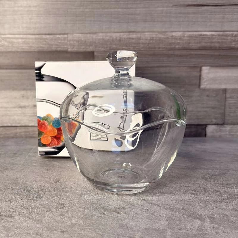 Ez a letisztult, átlátszó üveg bonbonier gömbölyded formájával és lágyan hullámzó vonalaival igazi klasszikus darab. A kerek fogantyús fedél praktikus és elegáns egyszerre, így édességek, kekszek vagy apró kincsek tárolására is remek választás.