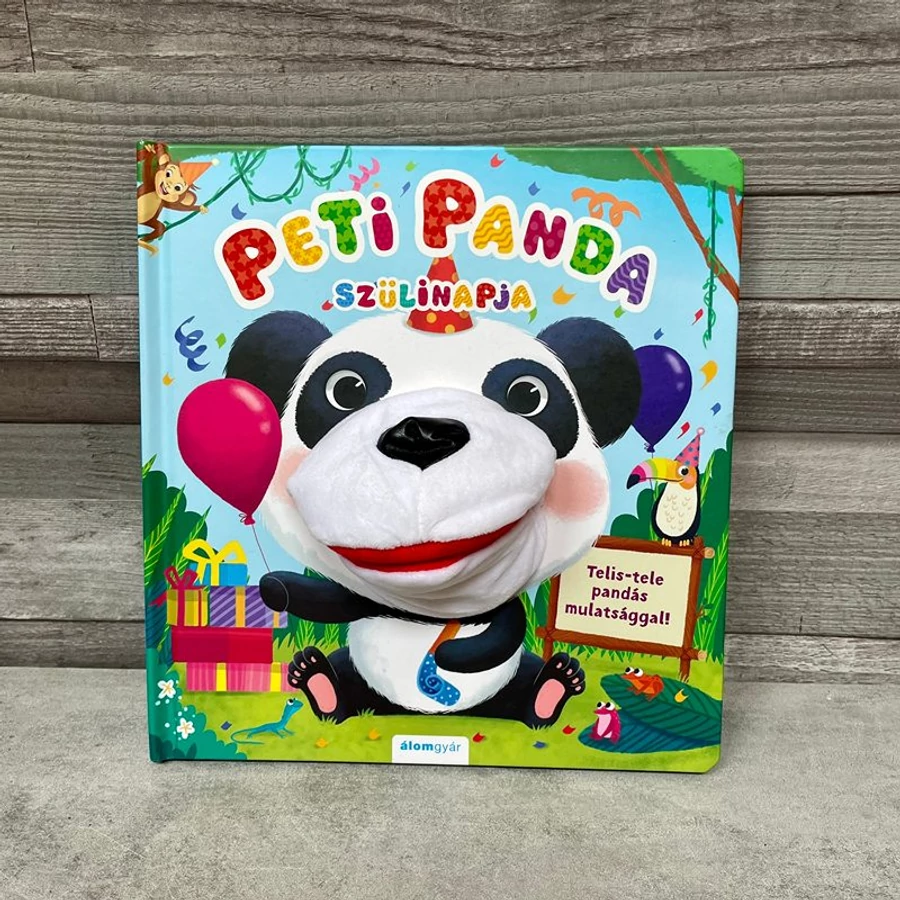 Peti Panda szülinapja gyermekkönyv plüss bábbal