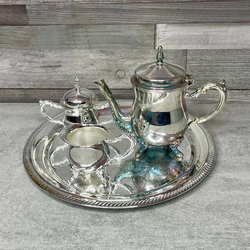 4 db tányér, 4 db csésze, 1 kávé kiöntő kancsó